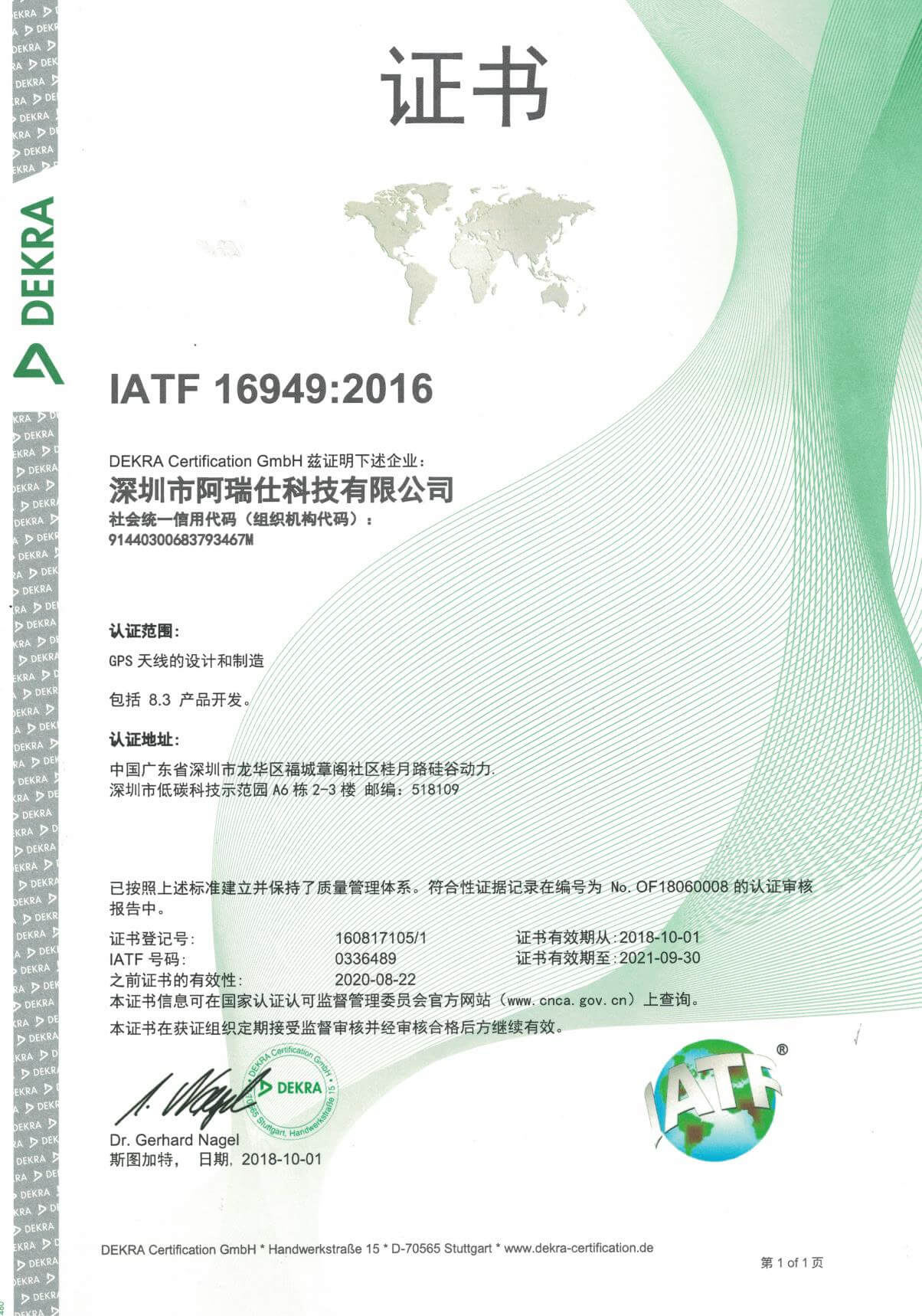 取得IATF16949,2016版質量證書